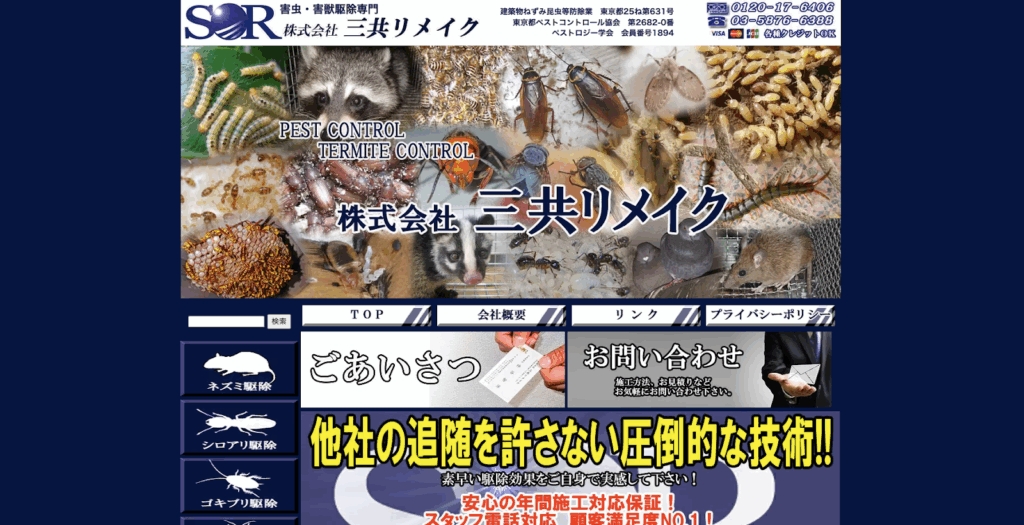 「三共リメイク」は平成18年創業の害獣駆除の専門業者です。「目に見えない問題に、徹底して向き合い、本質的な解決に導くこと」を大切にしています。近年はAIの活用に力を入れており、高度なデータ分析から害獣の原因推定と対策立案を行います。電話のほか、LINEでの問い合わせも可能です。