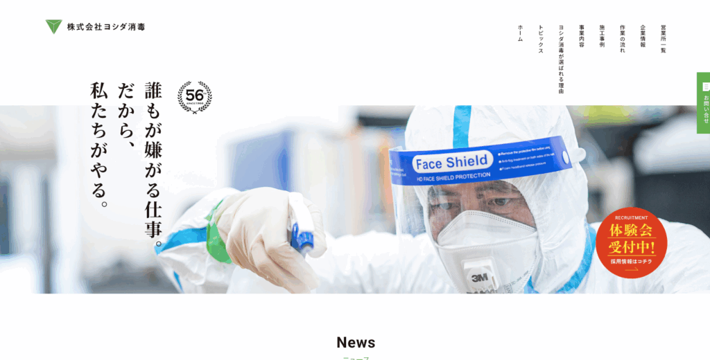 「ヨシダ消毒」は練馬区に本社を構える老舗の害虫・害獣の駆除を行う会社です。ただ駆除するのではなく、発生した原因を徹底的に考え、対策することで依頼者の快適な暮らしを約束します。問い合わせを受けると速やかに現場調査を行い、調査・見積り・施工・アフターケアまで一貫した体制を整えています。